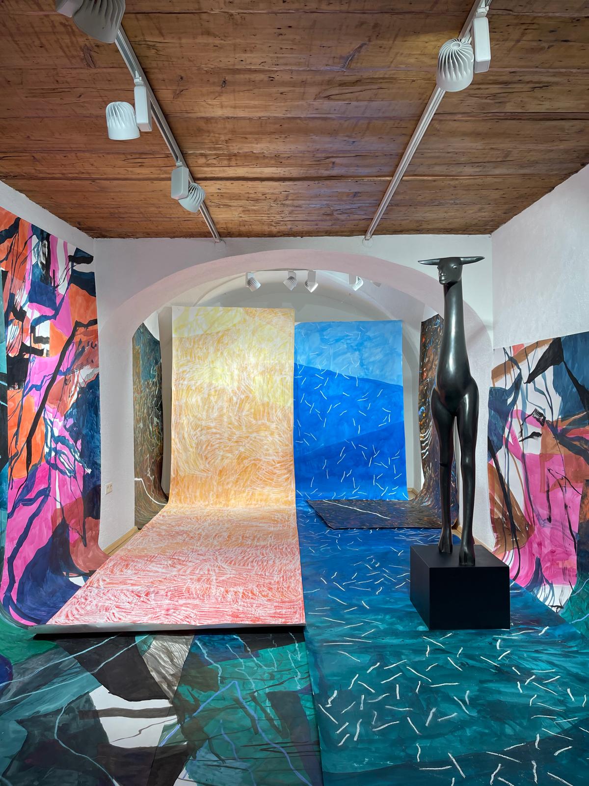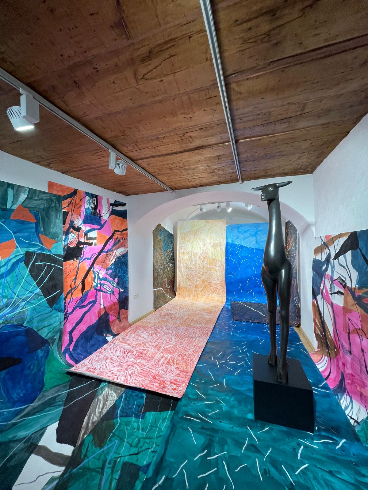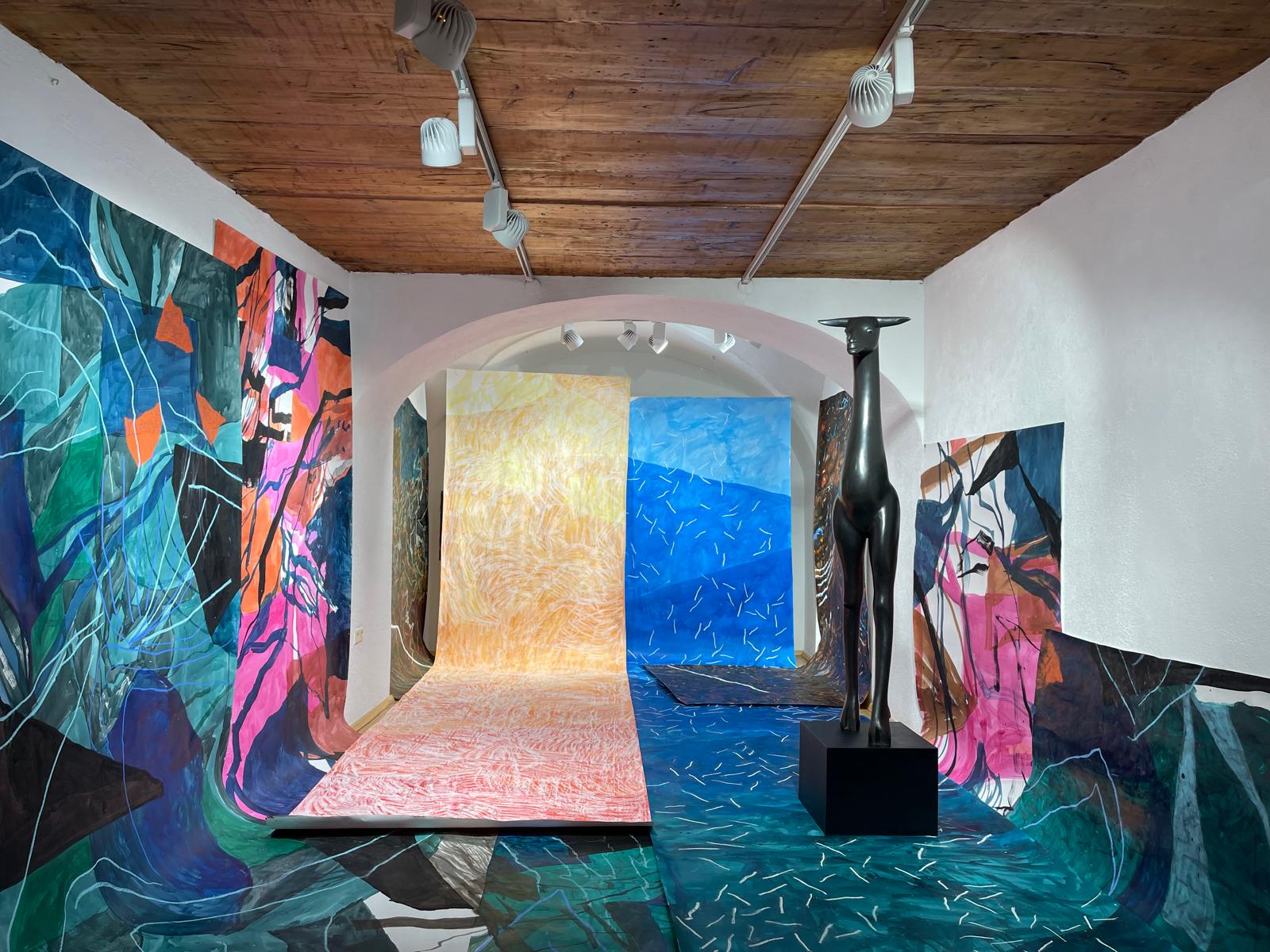 This theme is also explored through an installation, created on almost six metres of paper painted with ink and pastel. Bando once again incorporates abstract motifs, drawn from the everyday view through her studio window: the Zagreb façades that shift in front of the studio, witnessing the evolving fabric of the city. In her work titled “Fractured Horizons”, Bando continues her exploration of space, creating a new kind of space within the painting that combines elements of the real world with an imagined one.1 By opting for the installation format, Jelena Bando’s distinctive style remains consistent, staying true to her signature approach and, above all, the high quality of execution.